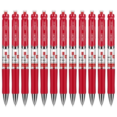 • 商品名称:得力(deli)S01红色0.5mm经典办公按动中性笔水笔签字笔 子弹头12支盒