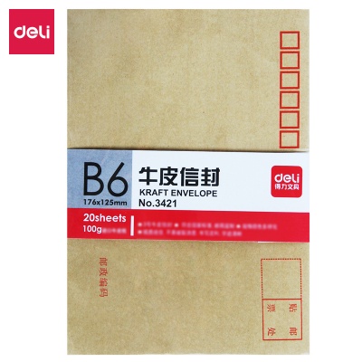• 商品名称:得力(deli)20张3号牛皮纸信封 邮局标准信封176125mm 3421-20