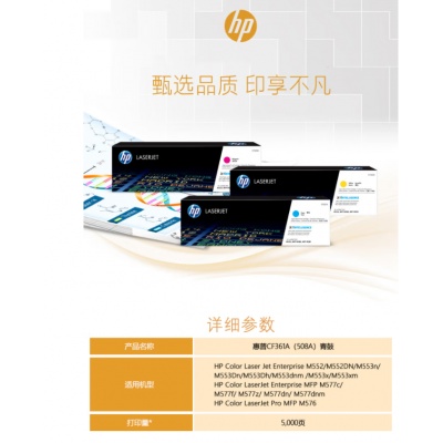 • 商品名称: 惠普(HP)CF361A 508A 硒鼓原装 青色单支装 适用HP M552 M553 M576 M577系列 打印机硒鼓