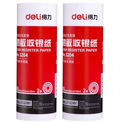 得力(deli)80mm*58mm热敏收银纸/收银机打印纸/超市小票打印纸 28米/卷 2卷装 3204