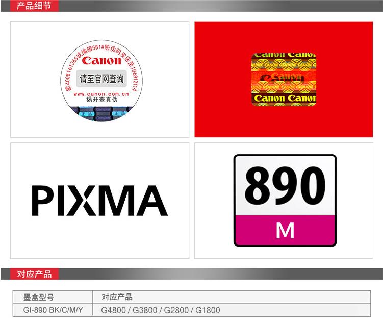 • 商品名称:佳能(Canon)GI-890 M 红色墨水瓶(适用G4800、G3800、G2800、G1800)