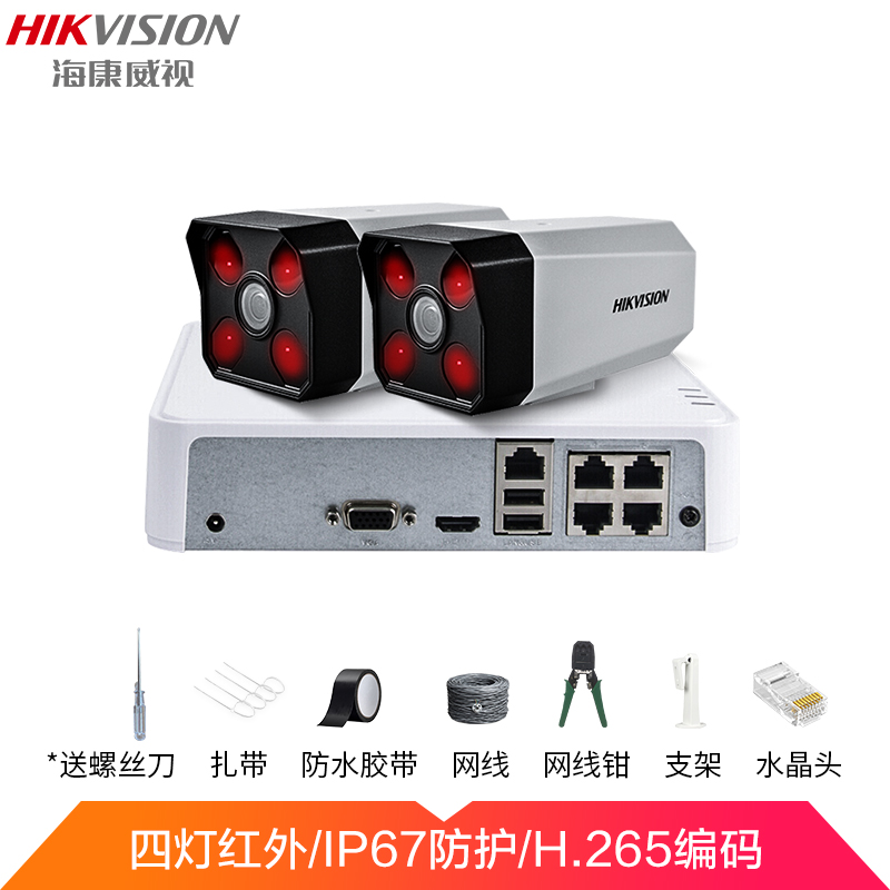 • 商品名称:海康威视摄像头 监控设备套装 2路带6TB硬盘 200万套装 POE供 红外50米 手机监控 H.265编码B12H 存储更长
