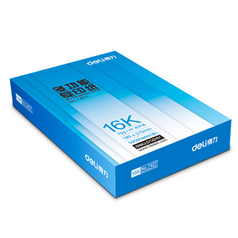 • 商品名称:得力(deli) 7408 16K 莱茵河复印纸 70g 500张/包 8包/箱
