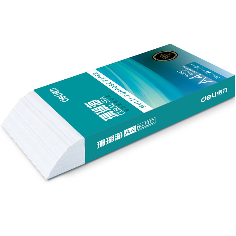 • 商品名称:得力(deli) 7377 A4 珊瑚海复印纸 80g 500张/包 单包装